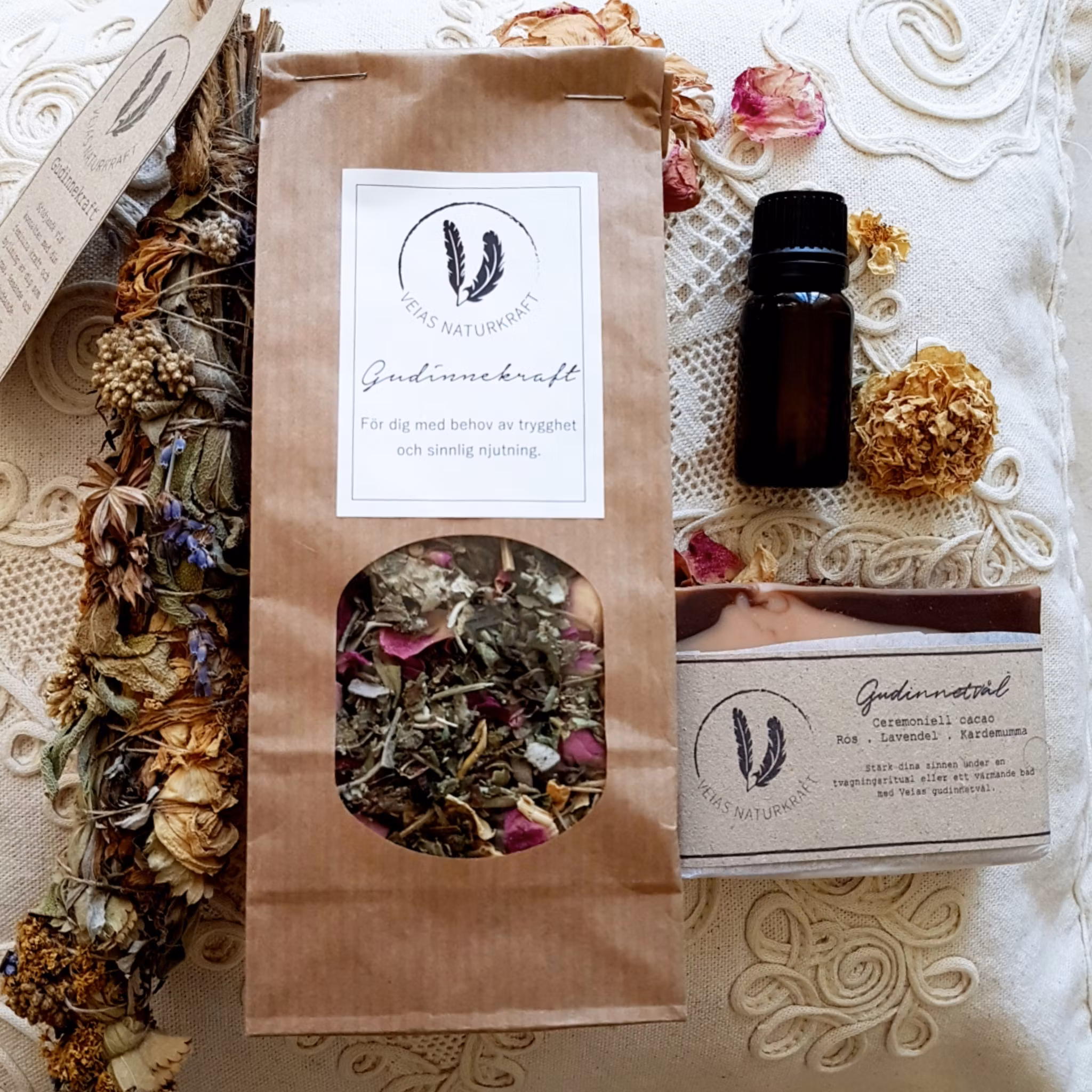 Gudinnekraft ritualpaket är kärleksfullt sammansatt av gudomliga essenser som stödjer dig i kontakten med din livmoderkraft, ditt hjärta och din sanning.