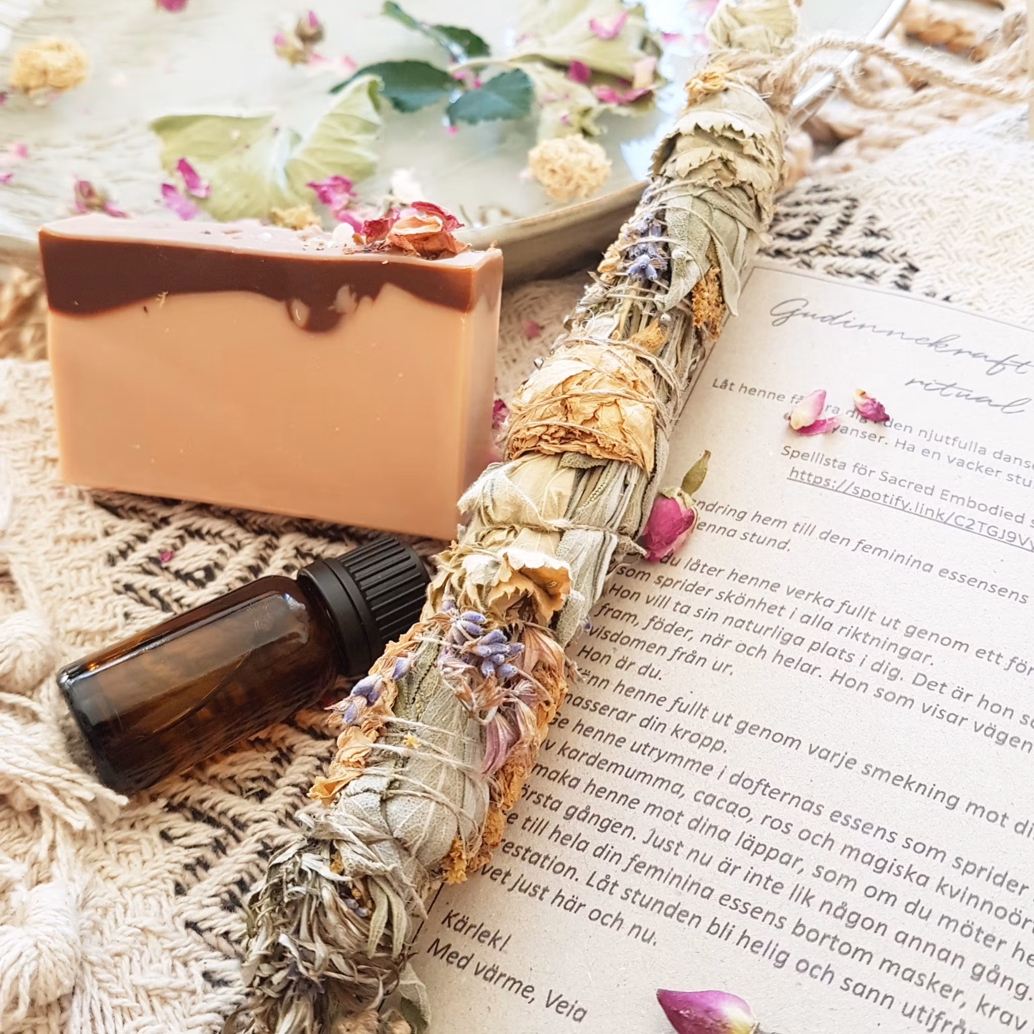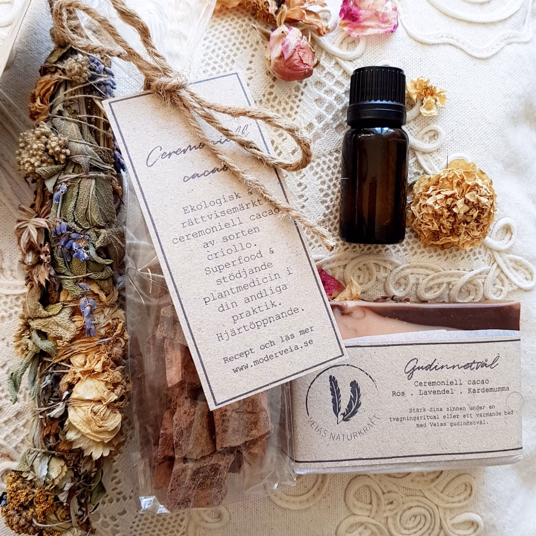 -Liten gudinnetvål med ceremoniell cacao, ros och kardemumma