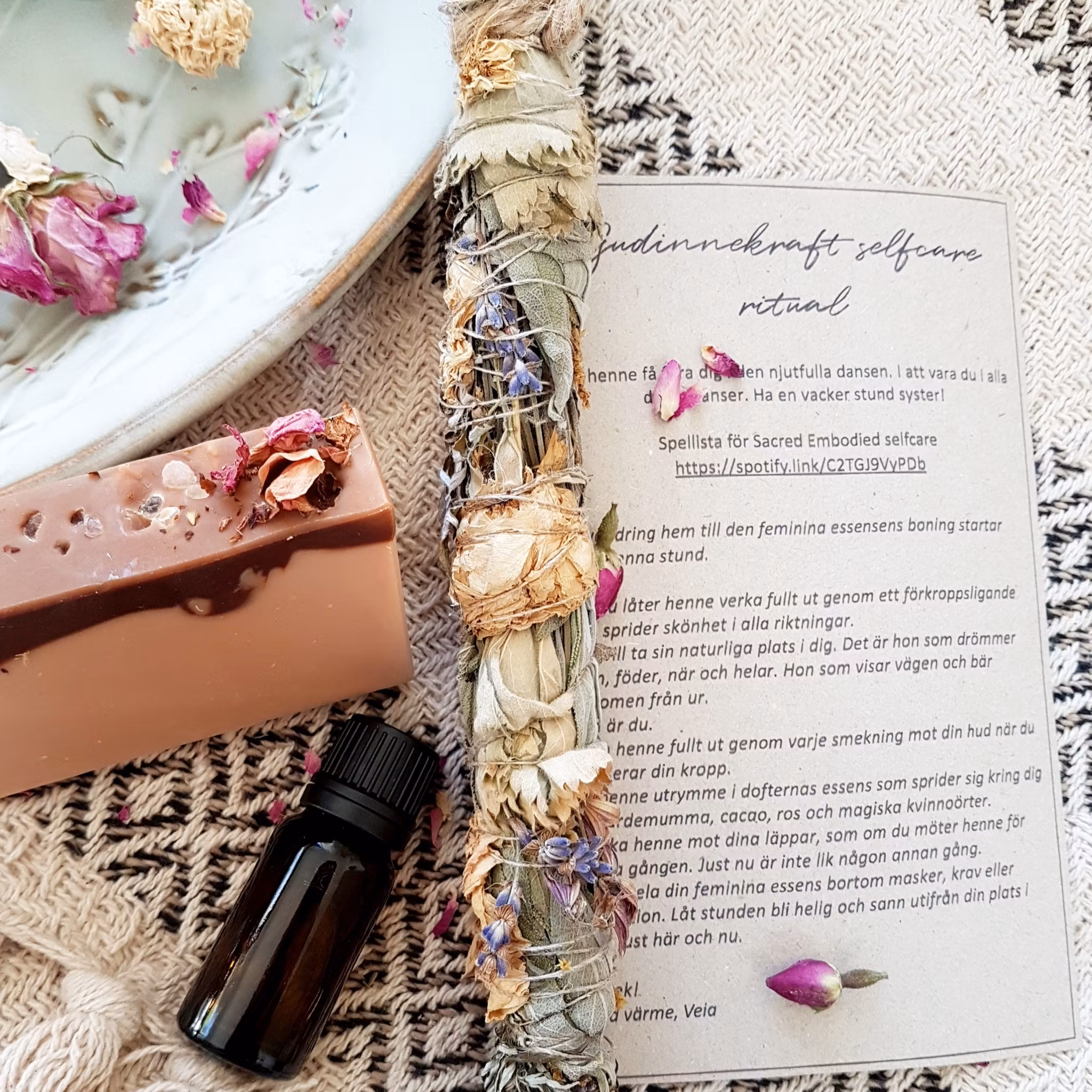 Tillred din dryck, häll upp ett varmt bad, tänd ljus och fyll rummet med rökelsens essenser. Bli guidad in i en njutfull vacker stund med din feminina essens.